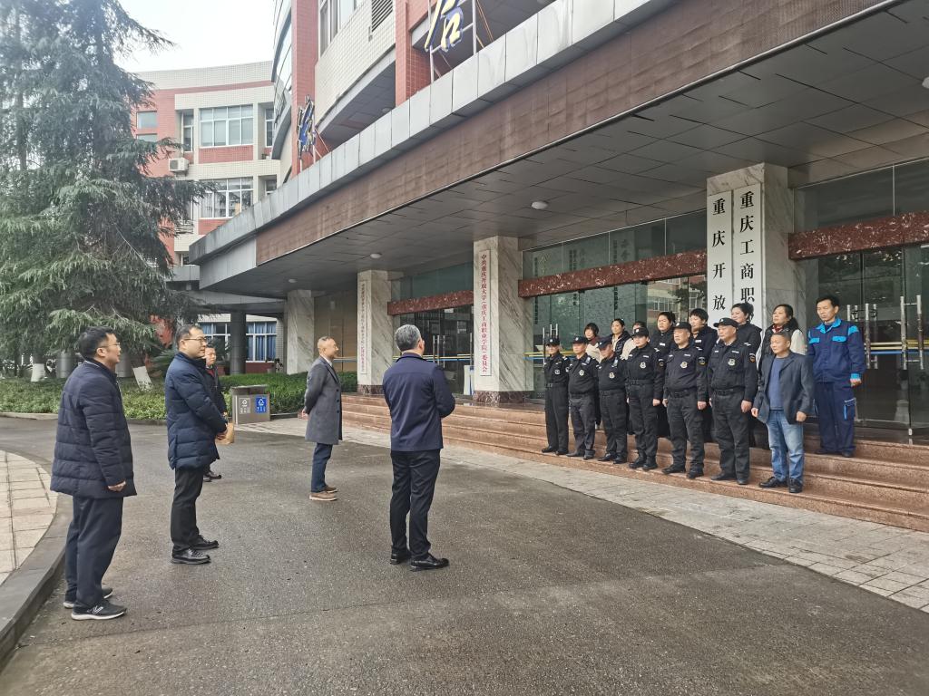 郭慶書記一行先后來到校區校門值班崗、監控中心、物業服務崗等,慰問堅守在一線崗位上的安全、服務、保障人員,向他們表示由衷感謝。隨后,郭慶書記一行詳細了解了寒假期間學校安全保衛、物業管理、后勤保障等情況,強調相關單位(部門)要強化責任意識,嚴格落實應急值守有關要求,確保春節及寒假期間校園安全穩定。