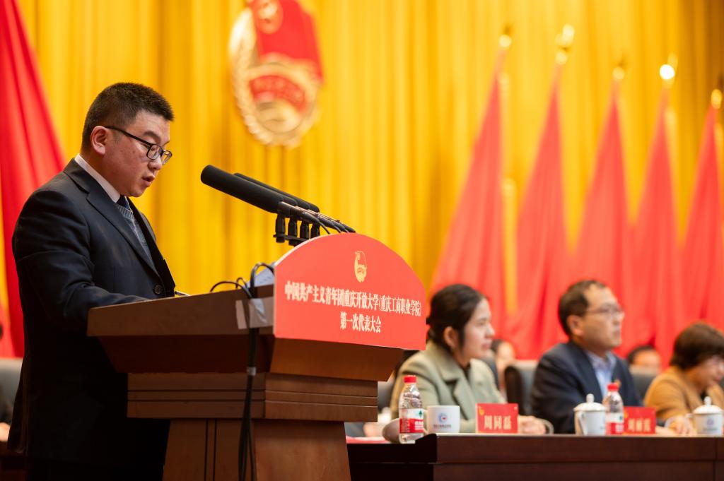 團委書記周同磊代表共青團重慶廣播電視大學(重慶工商職業學院)第七屆委員會作了題為《牢記囑托跟黨走挺膺擔當建新功,為建設“互聯網+雙一流”新型高校貢獻青春智慧和力量》的報告。