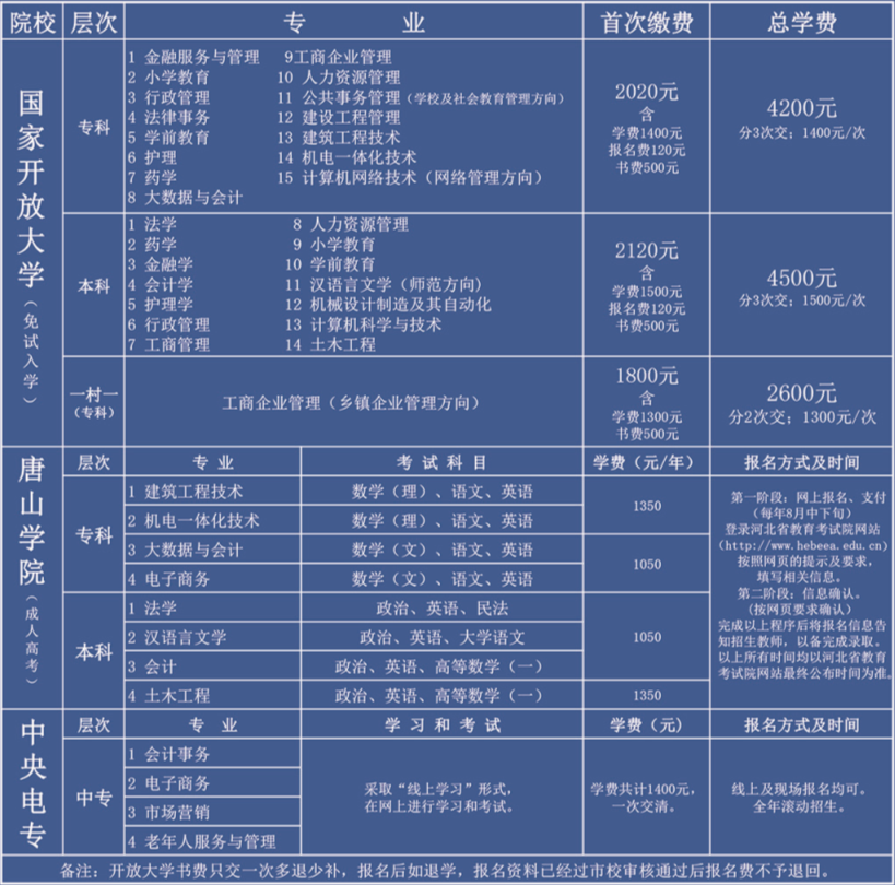 專、本科:每年分春、秋兩季招生(具體時間撥打咨詢電話或咨詢招生教師)。