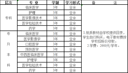 2.專業要求:專升本科:必須取得醫學類或藥學類大專或大專以上畢業文憑,專業對口;專科:(1)具有相關類別的助理執業醫師(或護師)資格;(2)或取得國家認可的普通中等衛生學校相應專業中專學歷;(3)或具有縣級及以上衛生行政部門頒發的鄉村醫生執業證書并有中專學歷或中專水平證書;(4)考生報考的專業原則上應與所從事的專業對口。