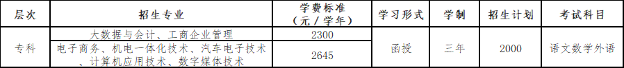 考試科目:語文、數學、外語。各專業均不須加試其他科目。