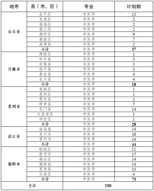 2022年廣東省各定點院校訂單定向醫學生招生計劃表(點擊下載)