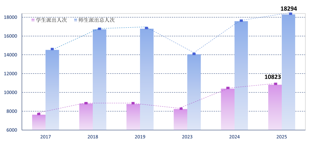2025年全校師生因公派出再創歷史新高,師生因公派出18294人次,其中,學生10823人次。組織170個校級海外學習項目,錄取人數達926人。以數字化與AI賦能為抓手,上線學生因公出國(境)申請系統,打造“零跑腿”的智慧服務體系。舉辦清華大學首屆學生海外學習項目開放日,推出因公派出和海外學習AI智能體外事AI智能體,顯著提升外事服務效率與師生體驗。