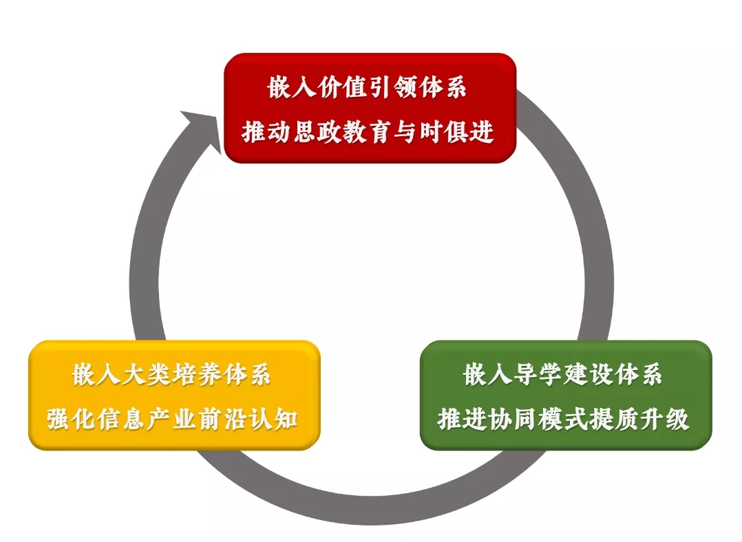既注重與企業協同開展引導學生樹立遠大理想、立大志入主流的思政育人,也注重與企業開設信息產業前沿認知與創新創業能力實訓課程,開展大通識教育、專業通識教育,提升大類培養成效。