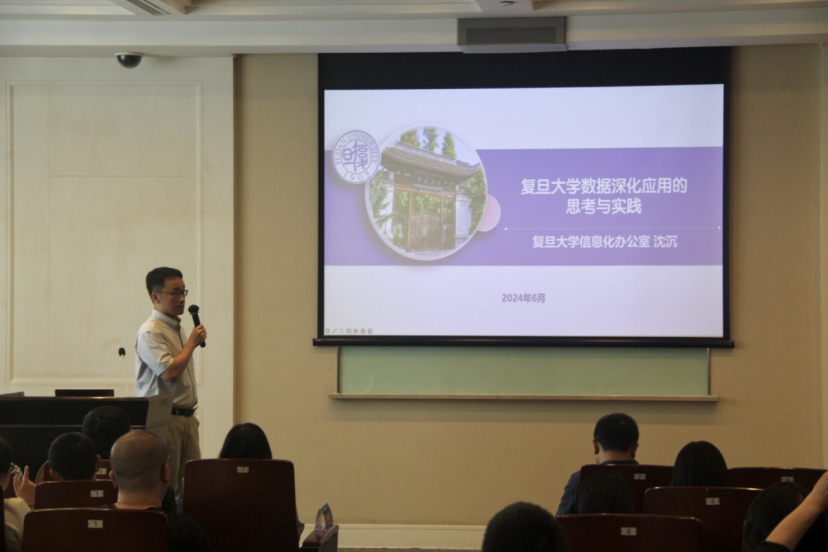復旦大學信息化辦公室預研與數據服務中心副主任沈沉分享了復旦大學在數據深化應用方面的最新思考、實踐與建設成果。他指出,數據深化應用的內涵包含五大方向:數據價值利用深化、數據服務能力深化、數據服務群體和業務范圍深化、數據開放共享深化以及數據應用開發隊伍深化。隨后,他列舉了學校基于上述方向探索應用的科研成果認領平臺、對接國家政務數據賦能校內業務、管理駕駛艙、師生畫像、自助分析平臺等應用場景。“在實踐應用中,學校提供政策制度保障,通過法律政策宣傳、組織制度落實、數據技能培訓、數據應用服務推廣四大維度落實數據文化培育措施,并建設數據平臺與工具應對數據安全的相關問題。”