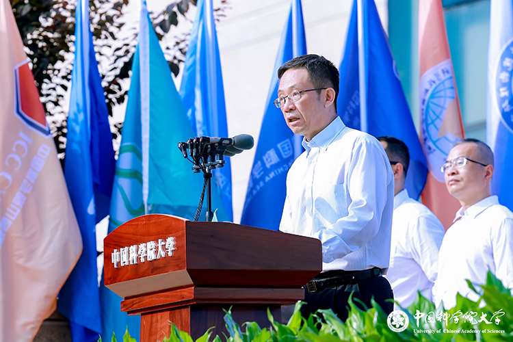 周琪校長發表題為“找準人生坐標 書寫科技報國的青春答卷”的致辭。他指出,國科大校園發端于“兩彈一星”事業,校園內保留著許多印證共和國歷史的建筑和樹木,它們是校園最珍貴的歷史標記,是一個偉大時代的精神地標。他勉勵國科大新生沿著老一輩科學家走過的道路,感受他們的矢志報國的赤膽忠心和對科學的執著追求,不斷汲取奮進的精神力量。他希望同學們要有夢想,要有品位,要有情懷,靜心叩問選擇國科大的初心,用心理解前輩們艱苦卓絕的創業史,潛心書寫屬于自己的科學人生。