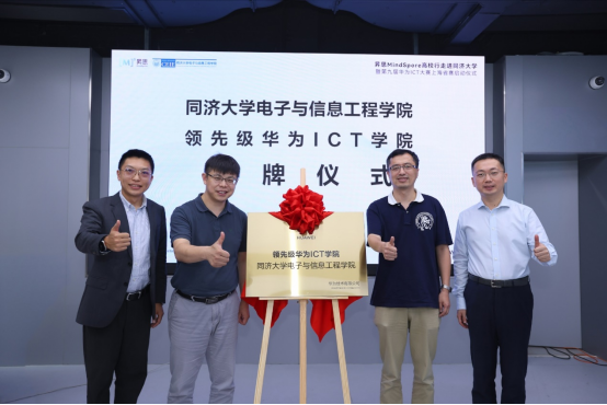 2024年9月27日,昇思MindSpore高校行走進同濟大學暨第九屆華為ICT大賽上海市賽啟動儀式在同濟大學四平路校區順利舉辦。活動中,同濟大學電子與信息工程學院與華為技術有限公司共建“領先級華為ICT學院”正式揭牌。華為技術有限公司中國區產業發展與生態部副部長王新、中國區人才發展業務校企合作總監褚力行、華為ICT學院合作總監魏彪、華為上海ICT學院合作總監翟彥杰等一行參與授牌,同濟大學電子與信息工程學院副院長周俊鶴、副教授齊鵬共同參加授牌儀式。