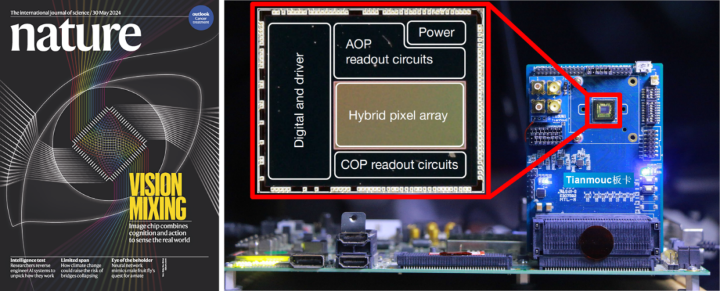 團隊借鑒人類視覺機制,創新性地提出了基于原語表示的多通路互補類腦視覺感知新范式。在此基礎上,研發出全球首款基于原語的類腦互補視覺芯片“天眸芯”,在顯著降低帶寬(降低90%)和功耗下,實現了每秒10000幀、10bit、130dB的高速、高精度、高動態范圍視覺感知,突破了傳統技術的局限,展現卓越的魯棒性和性能。團隊圍繞“天眸芯”構建了完善的軟件工具平臺、算法庫和數據庫,在自動駕駛開放場景下展示了優異性能。成果作為封面發表在《自然》,榮獲世界互聯網大會全球領先科技成果獎、Intel中國學術成就卓越研究獎。