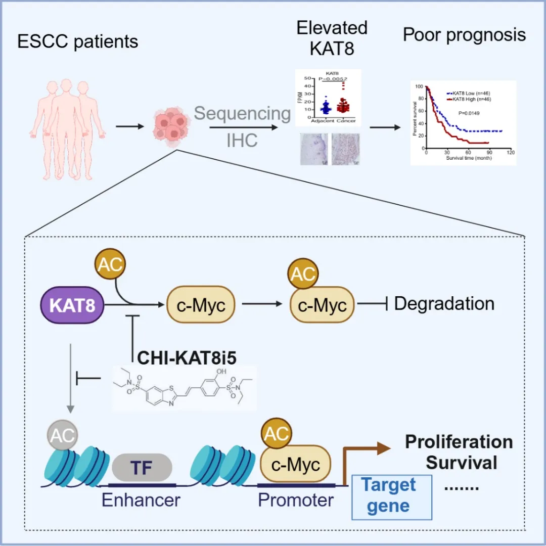 機制圖:CHI-KAT8i5通過抑制KAT8介導的c-Myc穩定性來抑制食管鱗癌的發生發展