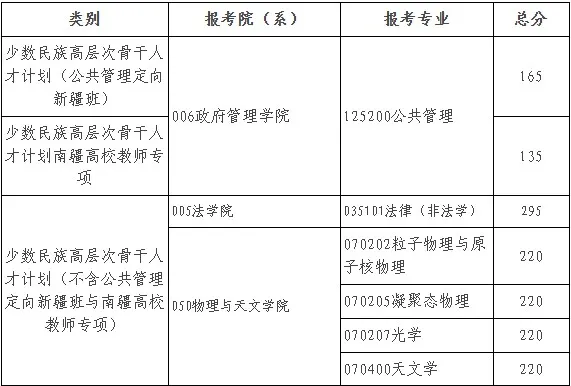 享受少數民族照顧政策的考生(指工作單位和戶籍在國務院公布的民族區域自治地方,且定向就業為原單位的少數民族在職人員考生):按照所報考院系(專業)復試分數線,總分線降10分,單科線不降。符合條件并在網上報名時申請享受照顧政策的考生須在所報考院系復試前向院系提出書面申請,并提交相關證明材料,未按規定申報的,不享受相應照顧政策。