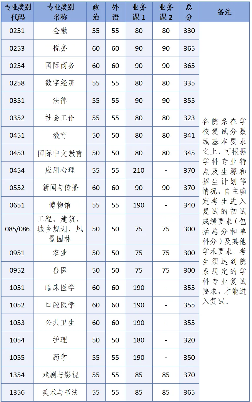1. 醫學院護理專業學位類別考生,滿分為100分的科目成績不低于50分,滿分為300分的科目成績不低于150分,總分成績不低于320分。