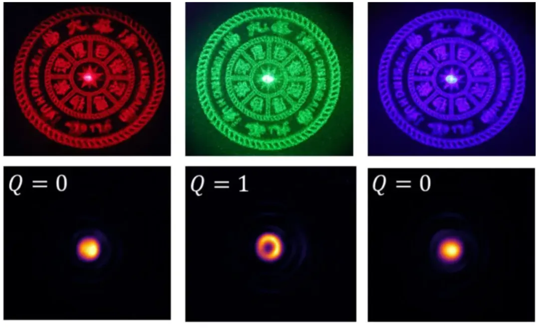 BIC處實現波前調控。通過幾何相位編碼形成的全息圖具有寬帶特性(上),而由BIC拓撲產生的渦旋光具有窄帶特性