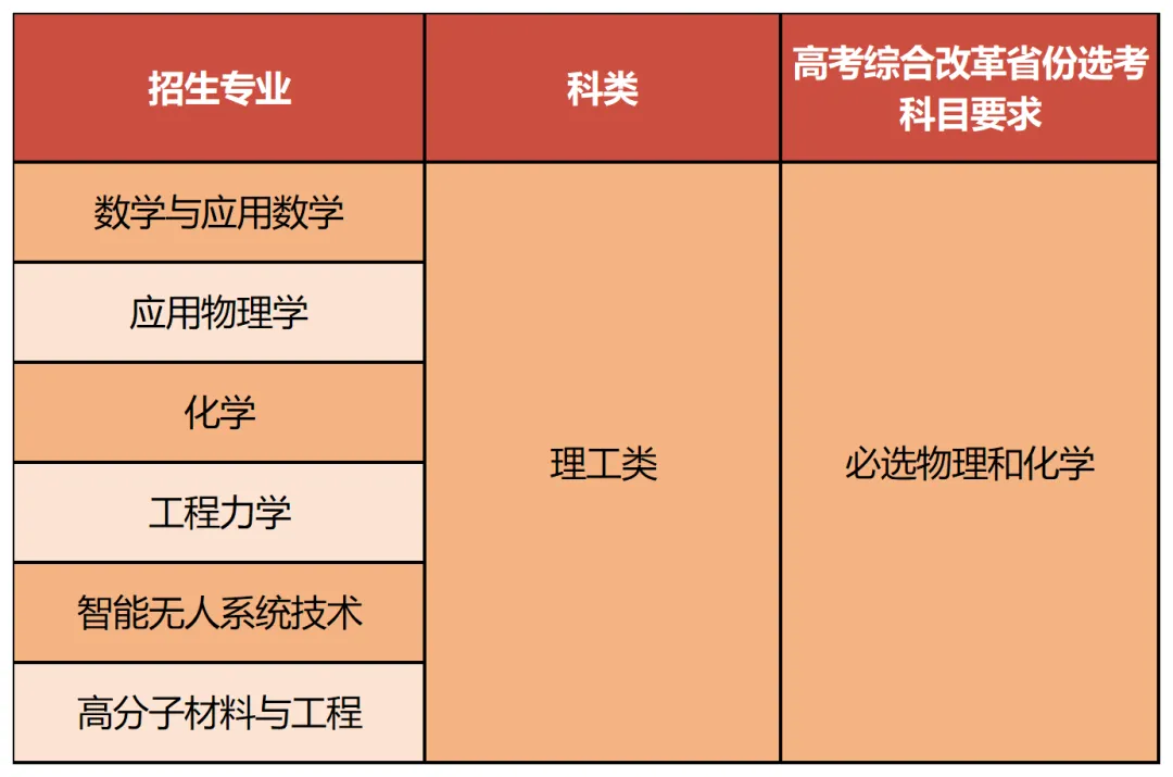 北京理工大學強基計劃招生專業及高考綜合改革省份選考科目要求如下: