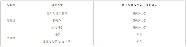 服務國家重大戰略需求的基礎理科學科以及國家人才緊缺的社會科學與人文學科領域,招生專業、選考科目、科類要求及招生計劃見下表: