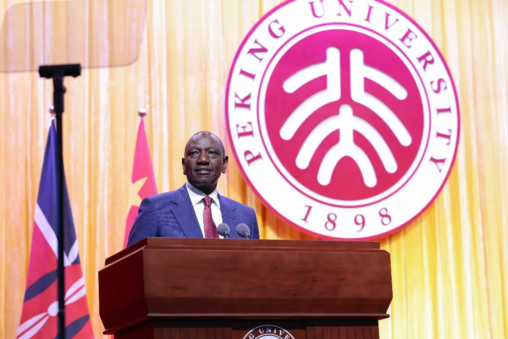 4月23日上午,肯尼亞共和國總統威廉·薩莫伊·魯托(William Samoei Ruto)訪問北京大學并發表演講。總統夫人雷切爾·魯托、內閣首席部長兼外長穆薩利亞·穆達瓦迪等肯尼亞內閣官員,駐華使團代表等陪同來訪;中華人民共和國駐肯尼亞共和國特命全權大使郭海燕,教育部國際合作與交流司副司長趙磊,北京大學黨委書記、校務委員會主任何光彩,校長龔旗煌,校黨委常務副書記、校務委員會副主任陳寶劍,校黨委副書記、校務委員會副主任顧濤等學校領導班子成員與師生代表共同參加活動。演講會在辦公樓禮堂舉行,由副校長方方主持。
