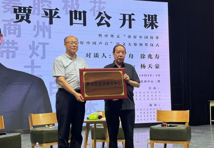 西北師范大學官網消息:6月16日,西北師大舉行中國當代著名作家賈平凹特聘教授、文學院兼職博士生導師聘任儀式。西北師大黨委書記賈寧為賈平凹頒發聘書。甘肅省文聯黨組副書記、副主席王正茂,《西部文藝研究》執行主編王安民,西北師大副校長馬世年、中外寫作中心主任劉玉泉出席活動。儀式由西北師大黨委副書記王全進主持。