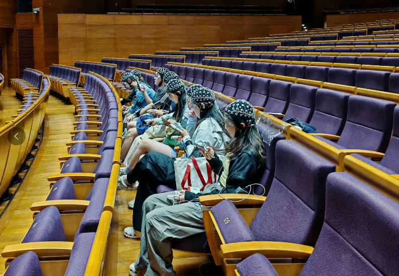 圖上,8位頭戴“神奇發帽”的人坐在新清華學堂舞劇演出《詠春》的觀眾席上,網友紛紛留言,有人以為是集體染發看演出的行為藝術,有人說這像是被蕨類植物寄生,還有人擔心會不會對身體有影響……