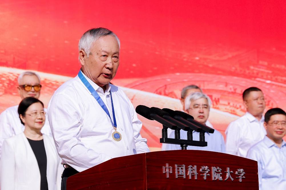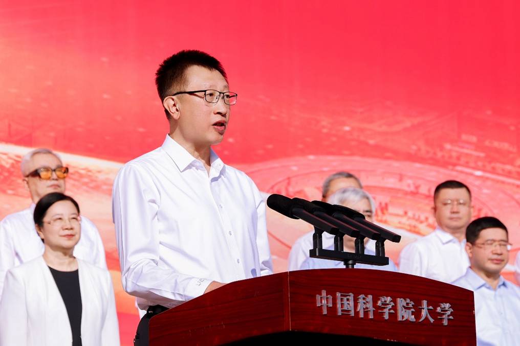 周琪發表題為“銘記歷史 開創未來”的致辭。他以70年前正式頒布《中國科學院研究生暫行條例》為例,介紹了中國科學院科教融合的育人傳統,以及國科大正在探索的自主人才培養模式;以60年前科學家建議開展人造衛星研制和世界上首次成功人工合成牛胰島素為例,講述了錢學森、趙九章等老先生們集智攻關、科技報國的精神傳承;以50年前中國科學院與德國馬普學會簽署合作協議為例,強調國際交流的本質是人與人的交流,希望同學們和留學生同學攜手并進,深刻理解并踐行“人類命運共同體”理念。他勉勵新生從學校的奮斗史中汲取力量,以前輩為榜樣,賡續“兩彈一星”精神,讀懂國科大人的使命,立足實際,解決國家最迫切需要解決的根本性難題。