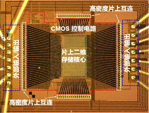 如何將二維材料與CMOS集成又不破壞其性能,是團隊需要攻克的核心難題。“我們沒有必要去改變CMOS,而是要去適應它。”團隊從本身就具有一定柔性的二維材料入手,通過模塊化的集成方案,先將二維存儲電路與成熟CMOS電路分離制造,再與CMOS控制電路通過高密度單片互連技術(微米尺度通孔)實現完整芯片集成。