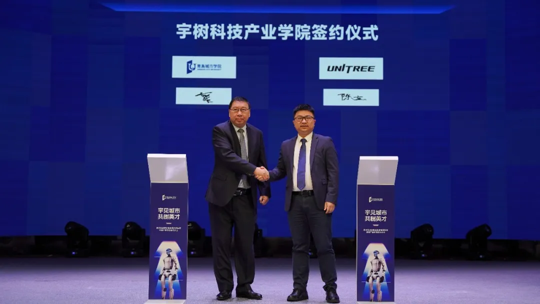 青島城市學院校長郭凱佳教授與宇樹科技聯合創始人陳立先生共同簽署協議,標志著雙方的合作從單一項目向體系化、學院化深度融合的戰略跨越,共同構建具身智能時代應用型人才培養的新范式。