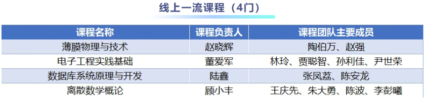此次電子科技大學入選的國家級一流本科課程,包括線上一流課程4門、虛擬仿真實驗教學一流課程4門、線上線下混合式一流課程10門、線下一流課程5門、社會實踐一流課程1門。