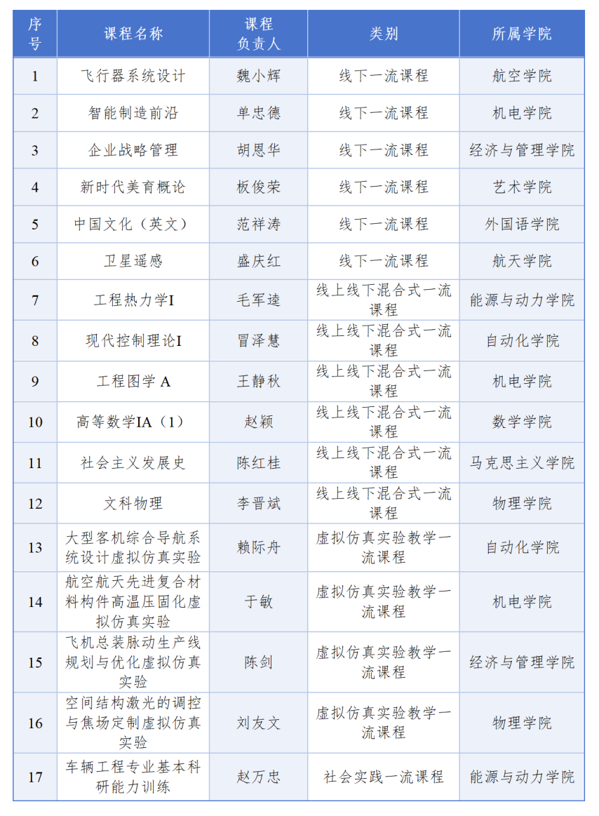 南京航空航天大學17門課程入選第三批國家級一流本科課程