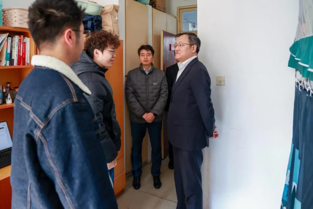 杜江峰一行在天賜莊校區沿路考察了東吳門、鐘樓、博物館等標志性建筑,聽取了學校歷史沿革、文物保護傳承等情況介紹。調研過程中,杜江峰詳細了解蘇州大學的辦學歷程和人才培養、科學研究、社會服務等方面的建設成效,以及校企協同推進科技創新、促成技術成果轉化等方面的特色做法。杜江峰一行還實地走訪了蘇州大學敬文書院,聽取了書院“育人為本、德育為先、個性培養、全面發展”的建設理念和一站式學生社區建設情況介紹,并與寒假留校學生面對面交流。