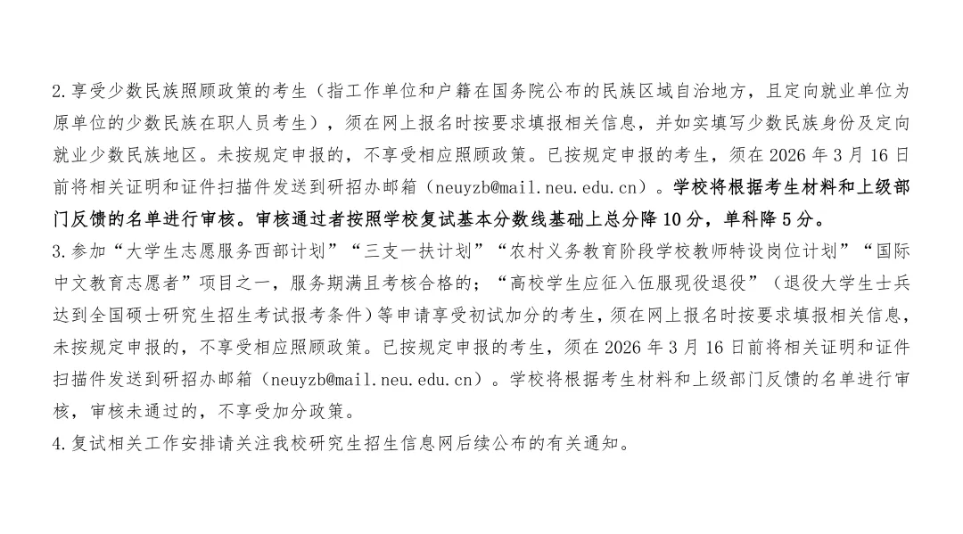 東北大學2026年碩士研究生招生考試考生進入復試的初試成績基本要求