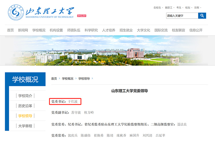 近日,山東理工大學網站更新學校領導信息,于紅波已任山東理工大學黨委書記。