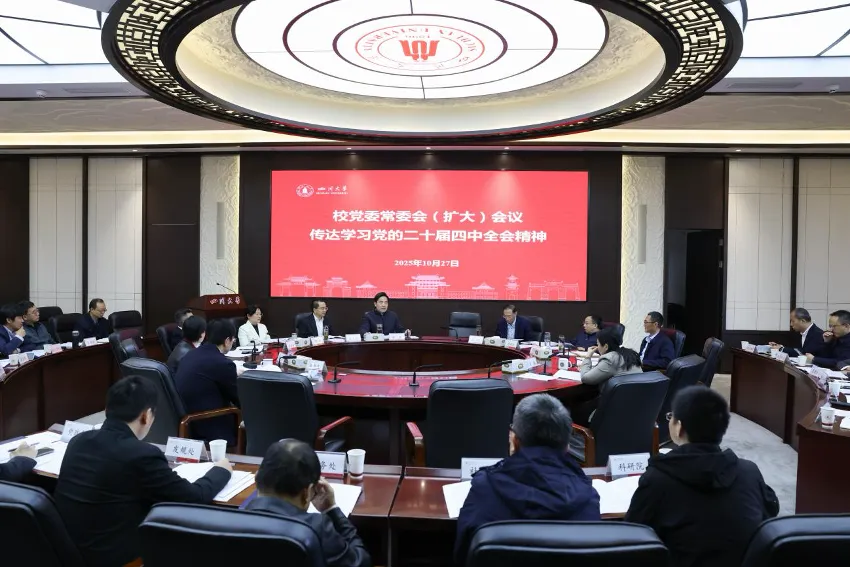 10月27日,四川大學黨委常委會召開(擴大)會議,傳達學習黨的二十屆四中全會精神,研究部署學校學習宣傳貫徹落實工作。校黨委書記甘霖主持會議,全體在校校領導,黨委常委,相關單位負責人參加會議。