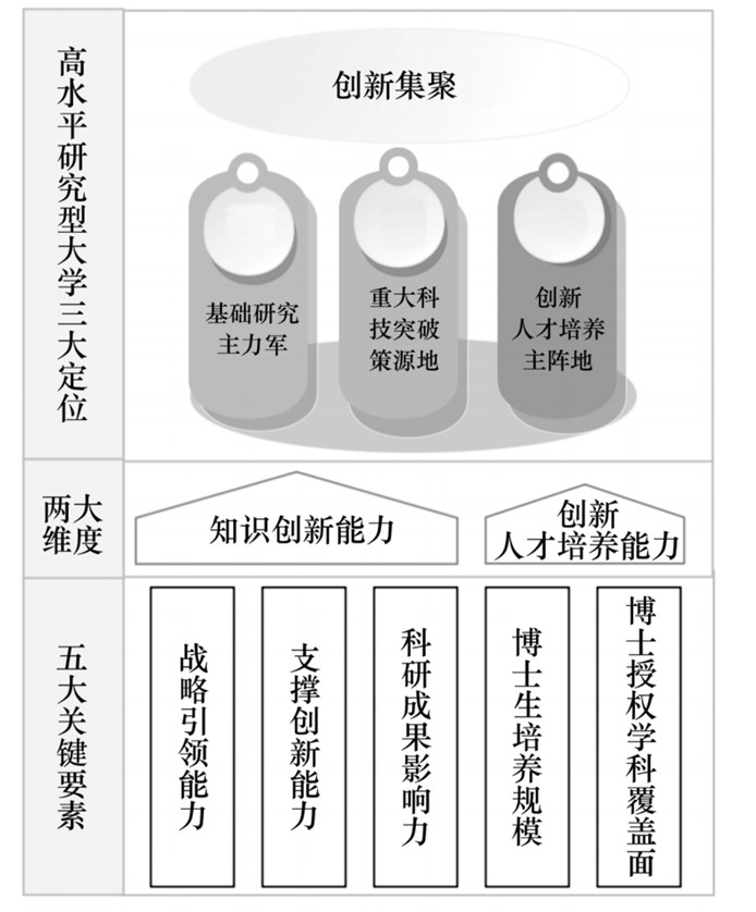 知識創新能力植根于大學的科學研究職能。在全球大學排名中,科學研究具有舉足輕重的地位,其指標一般包括論文數、專利數等。然而,中國的高水平研究型大學不僅是科研密集型大學,更是在推動原始創新、解決重大科技難題以及對接國家戰略需求方面發揮著關鍵作用的大學。知識創新能力是衡量高水平研究型大學的主要維度。高水平研究型大學的知識創新能力可以從戰略引領能力、支撐創新能力和科研成果影響力三個方面進行綜合反映。