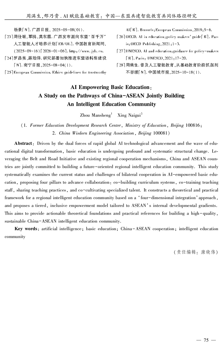 周滿生 邢乃貴|AI賦能基礎教育:中國—東盟共建智能教育共同體路徑研究