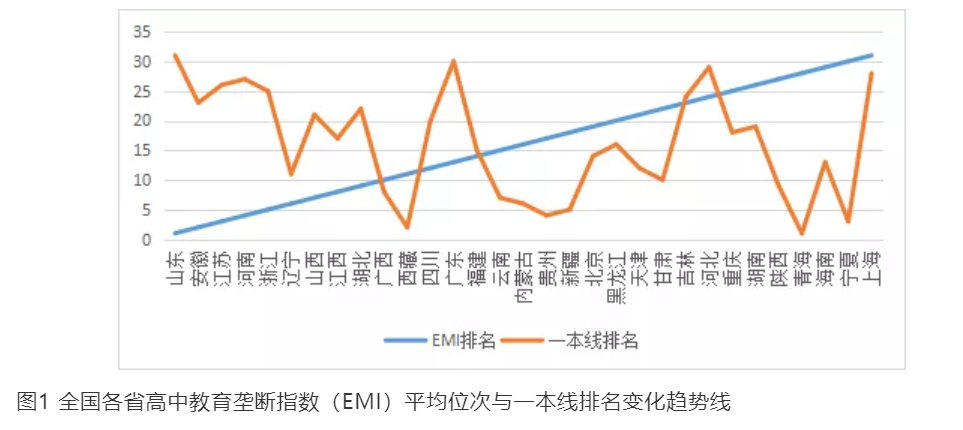 研究分析發現:超級中學教育壟斷指數越高,省內普通理科一本分數線越有可能會隨之下降。