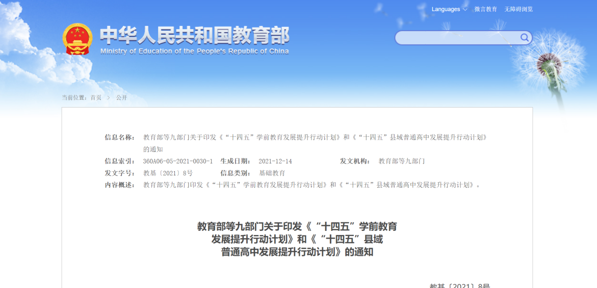 《“十四五”縣域普通高中發展提升行動計劃》提出目標:到2025年,縣中整體辦學水平顯著提升,市域內縣中和城區普通高中協調發展機制基本健全,統籌普通高中教育和中等職業教育發展,推動全國高中階段教育毛入學率達到92%以上。公民辦普通高中招生全面規范,縣中生源流失現象得到根本扭轉;教師補充激勵機制基本健全,縣中校長和教師隊伍建設明顯加強;教育經費投入機制基本健全,縣中辦學經費得到切實保障;薄弱縣中辦學條件基本改善,學校建設基本實現標準化;教育教學改革進一步深化,縣中教育質量顯著提高。