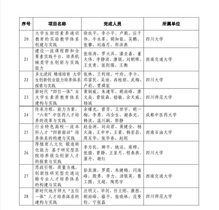 2021年四川省教學成果獎公布,特等獎有60項
