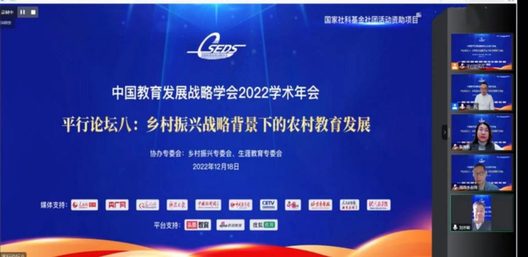 中國教育發展戰略學會2022年學術年會——鄉村振興戰略背景下的農村教育發展分論壇于12月18日在線上開幕。本次會議以“學習貫徹二十大精神,深入探討鄉村振興背景下的農村教育發展”為主題。聚焦多產業合作,打開思路,開拓新的教育模式,建立多點共建的發展戰略,推動鄉村教育的進一步深入。