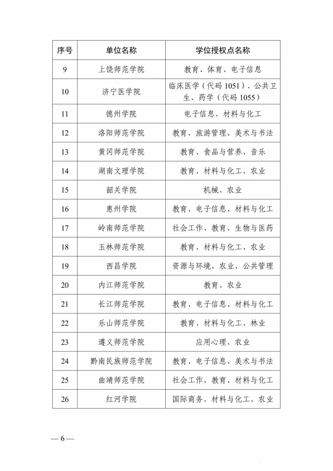 2023年度審核增列的博士、碩士學位授予單位及其新增學位授權點名單如下: