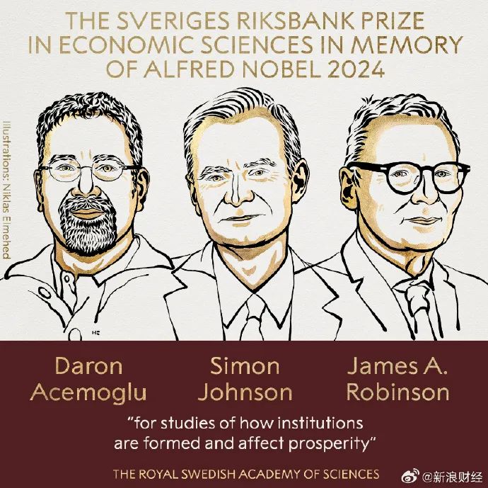 北京時間10月14日,2024年諾貝爾經濟學獎揭曉獲獎結果,Daron Acemoglu,Simon Johnson和James A. Robinson獲獎,以表彰他們關于“研究制度如何形成及其對繁榮的影響”的貢獻。獲獎獎金為1100萬瑞典克朗(約合人民幣744萬元)。