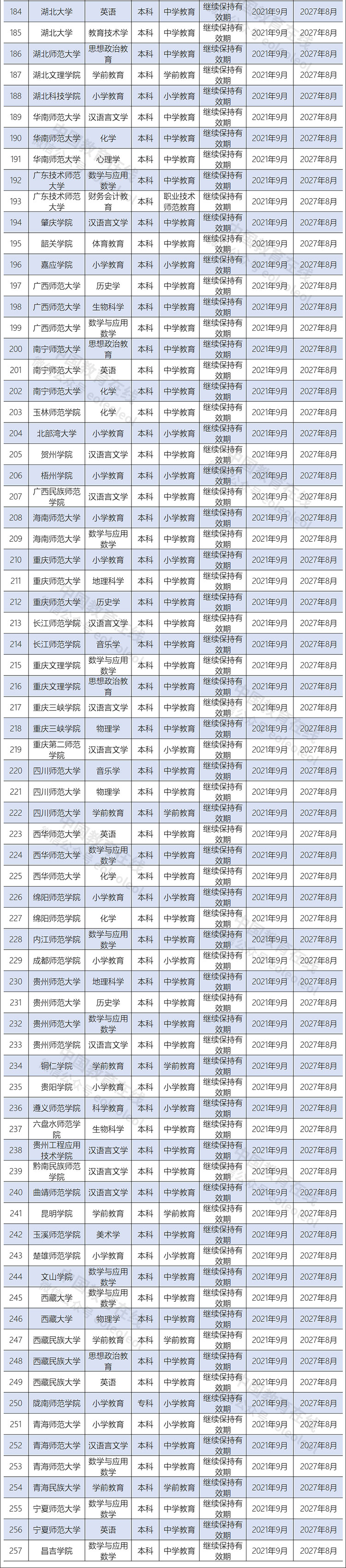 經高校提交整改材料、專家審查、普通高等學校師范類專業認證專家委員會審定,北京師范大學地理科學專業等263個專業通過了師范類專業認證中期審核,繼續保持原認證有效期。