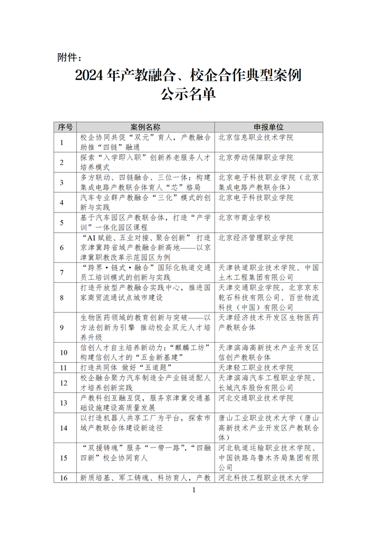 近日,教育部官網發布《關于2024年產教融合、校企合作典型案例遴選結果的公示》。