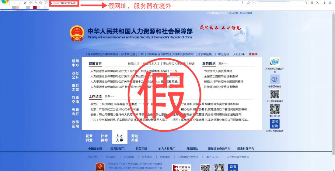 (仿冒人力資源和社會保障部相關網站,網址域名多次跳轉)