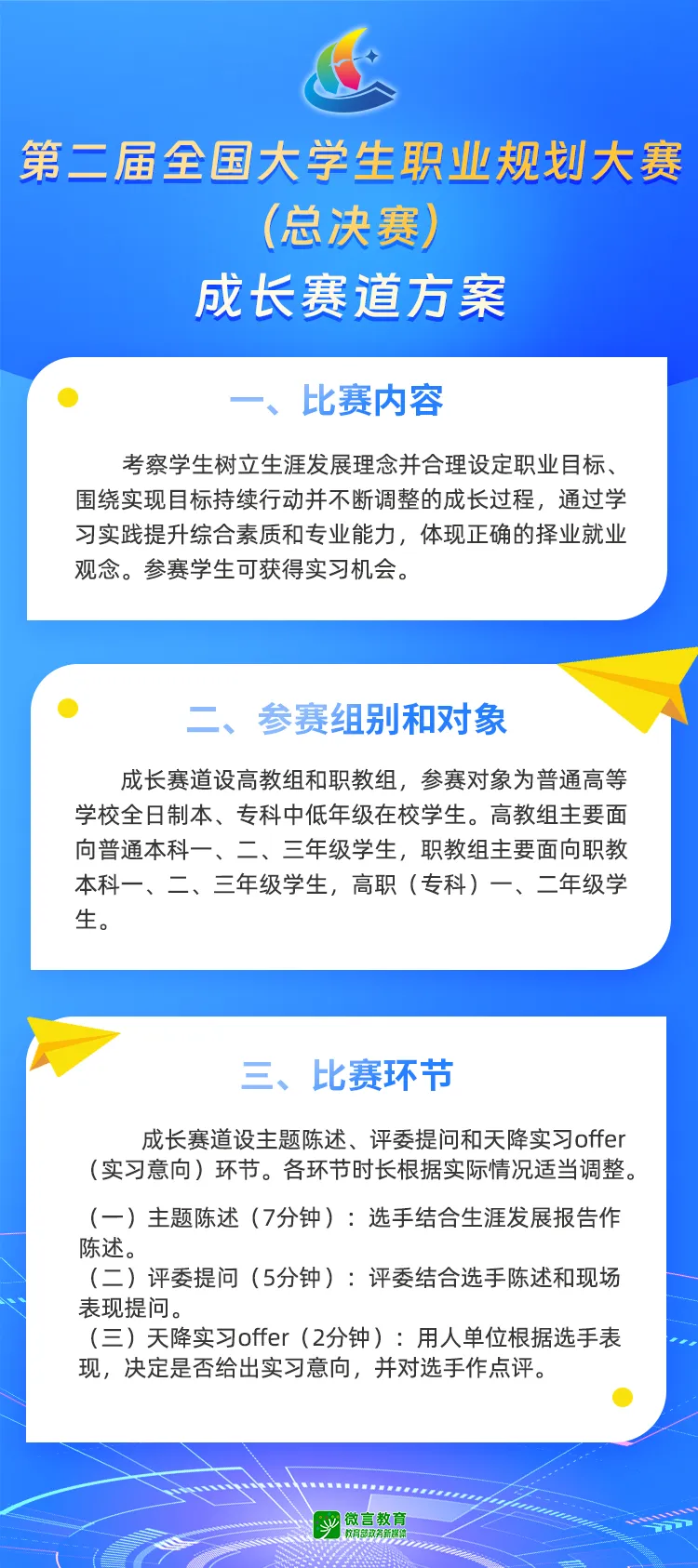 總決賽主體賽事包括學生成長賽道和就業賽道,成長賽道設高教組和職教組,就業賽道設高教本科生組、高教研究生組和職教組。