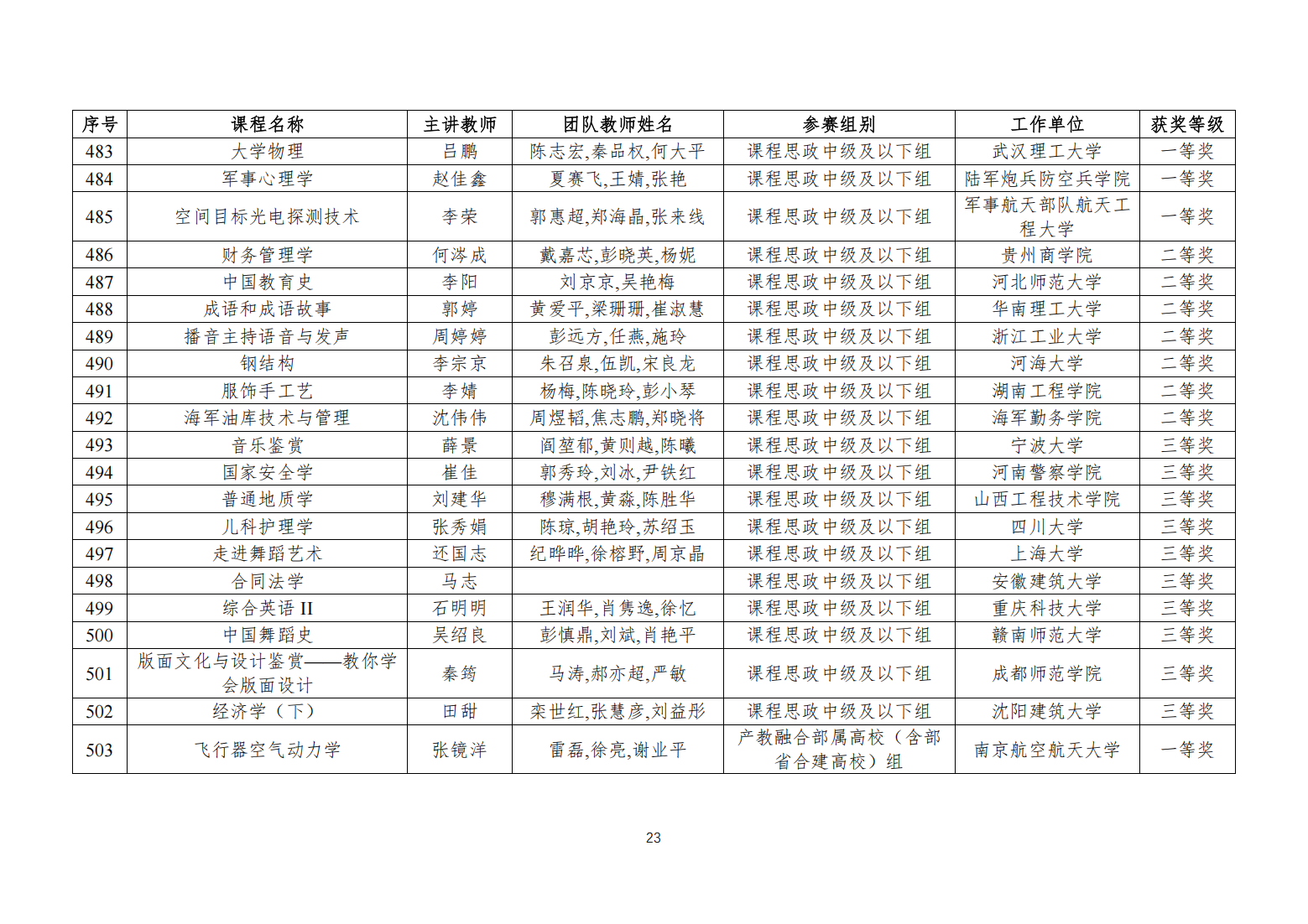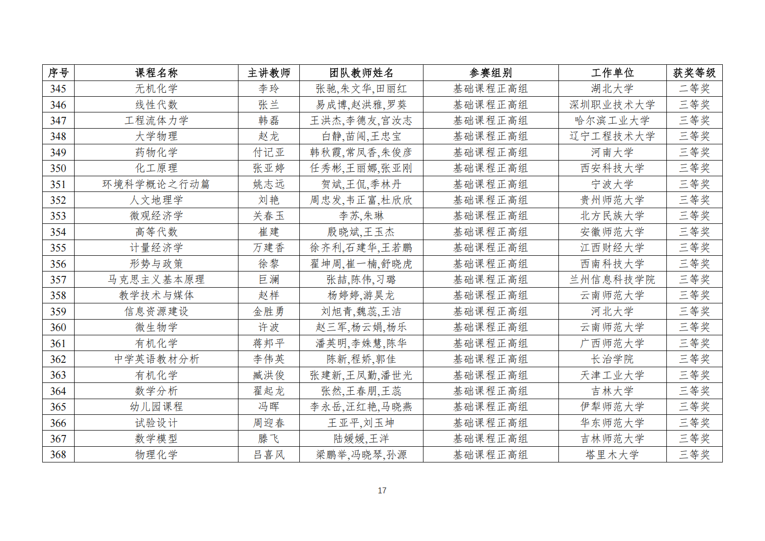 第五屆全國高校教師教學創新大賽獲獎教師(團隊)名單正式公布