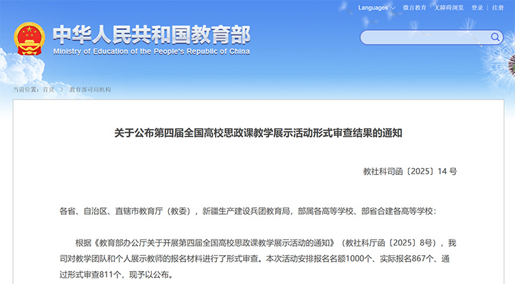第四屆全國高校思政課教學展示活動形式審查通過名單公布