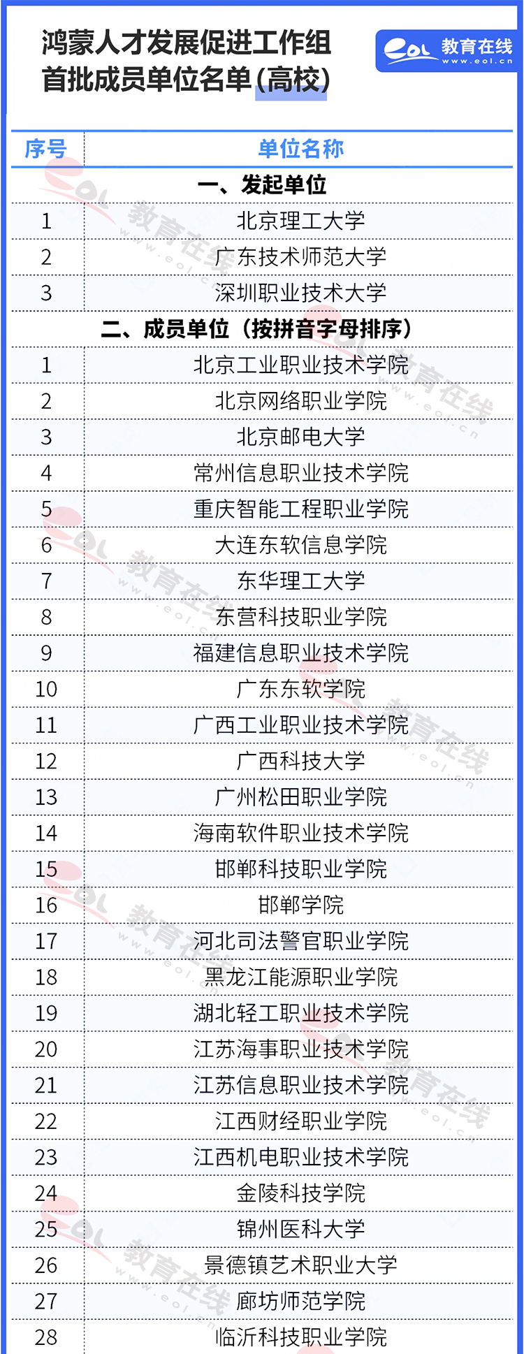 鴻蒙人才發展促進工作組首批成員單位名單(高校部分)