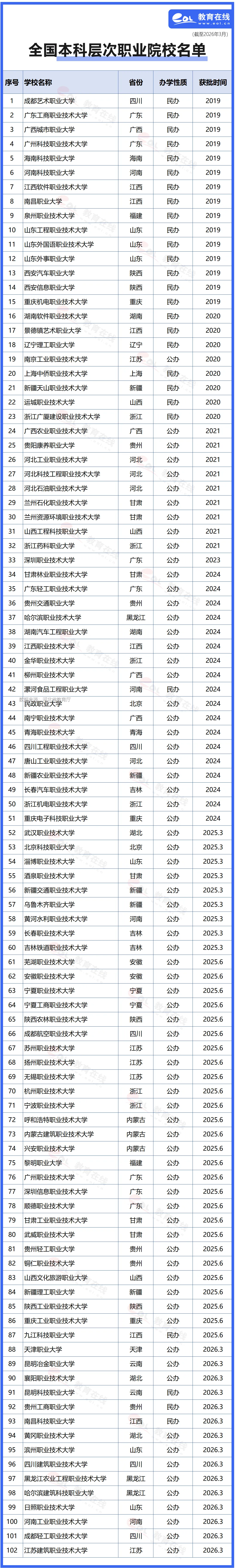 教育部發函!15所職業本科大學正式獲批(附102所全名單)