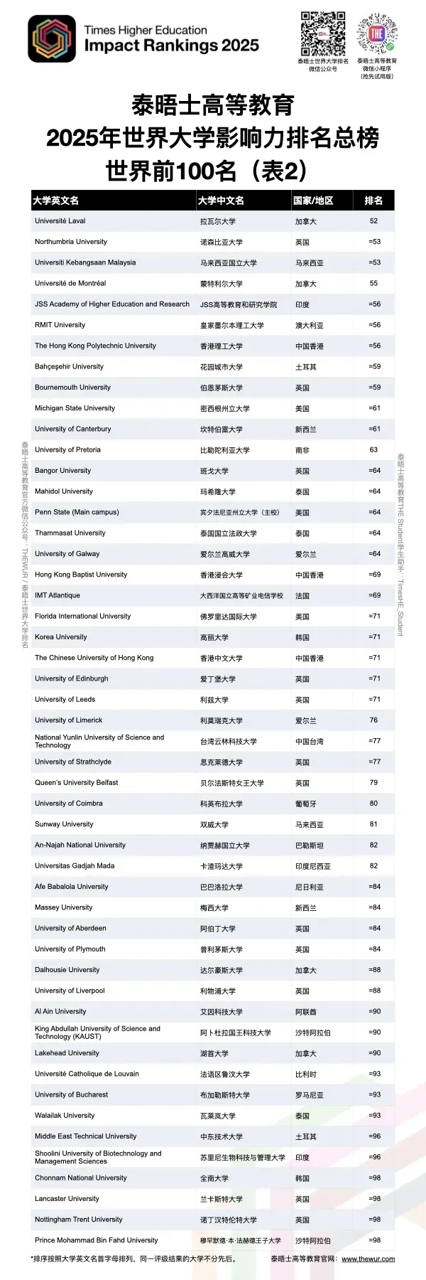 日前,2025年泰晤士高等教育世界大學影響力排名在土耳其舉行的全球可持續發展大會上隆重揭曉。
