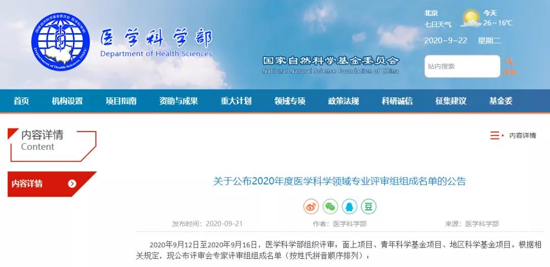 9月21日,國家自然科學基金委醫學科學部以公告的形式,正式公布了2020年醫學科學領域專業評審組專家名單,并明確已于9月12日-16日對申請項目進行評審。這也意味著,醫學科學部尚未公布的幾個項目立項結果即將放榜。