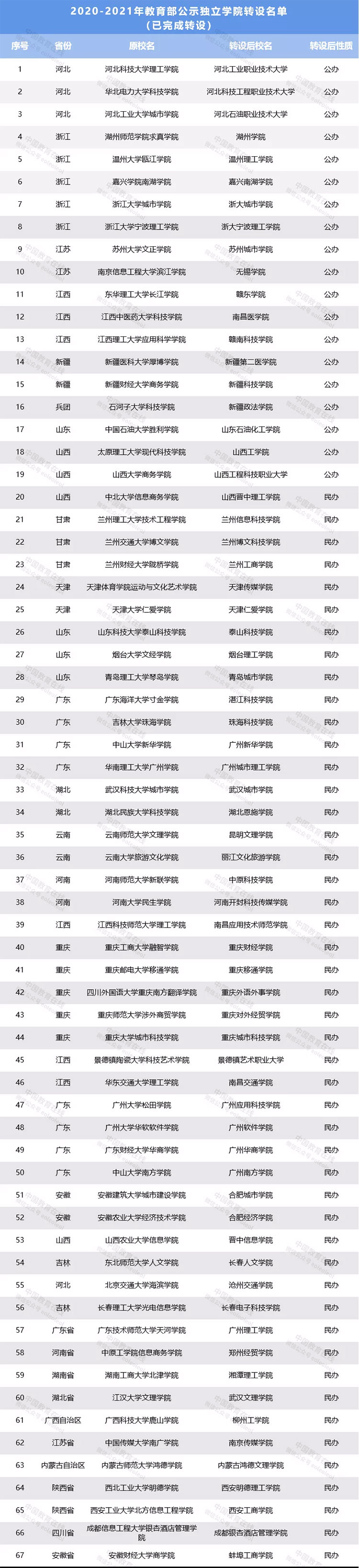自方案實施以來,很多獨立院校提交轉設工作方案并完成轉設,一批“新大學”出現在公眾視野,這些高校多數是更名后的獨立學院。距離2021年高考不足10天,不少同學及家長已經開始注意高校的招生情況,本期中國教育在線整理了已完成更名轉設的高校名單,及已通過教育部、教育廳公示的高校名單,以供參考。