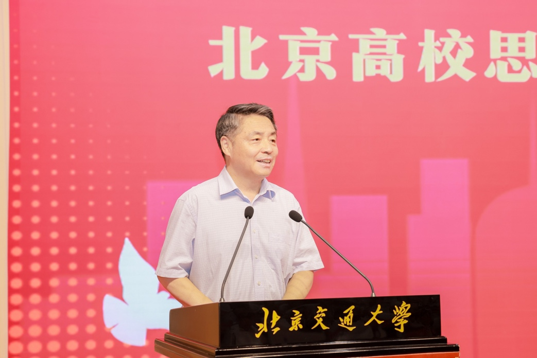 王稼瓊代表思政中心和北京交通大學向與會領導、專家學者、媒體朋友表示熱烈歡迎,并簡要介紹了交大和思政中心的有關情況。他表示今年正值京津冀協同發展戰略提出十周年,高校作為推動京津冀教育協同發展的主力軍,在“打造中國式現代化建設的先行區、示范區”進程中發揮著重要作用。近年來,交大主動服務國家戰略、積極融入京津冀教育協同發展,努力當好服務京津冀協同發展的先鋒隊和排頭兵。思政中心在北京市委教育工委和學校黨委的領導下,在各兄弟高校的支持下,堅持服務教育兩委思政工作大局,服務首都高校思政工作實踐,取得了顯著成績。今后,學校將堅持立足北京、服務京津冀,錨定高水平研究平臺的職能定位,進一步加強思政中心建設,努力為高校思政工作貢獻更大力量。